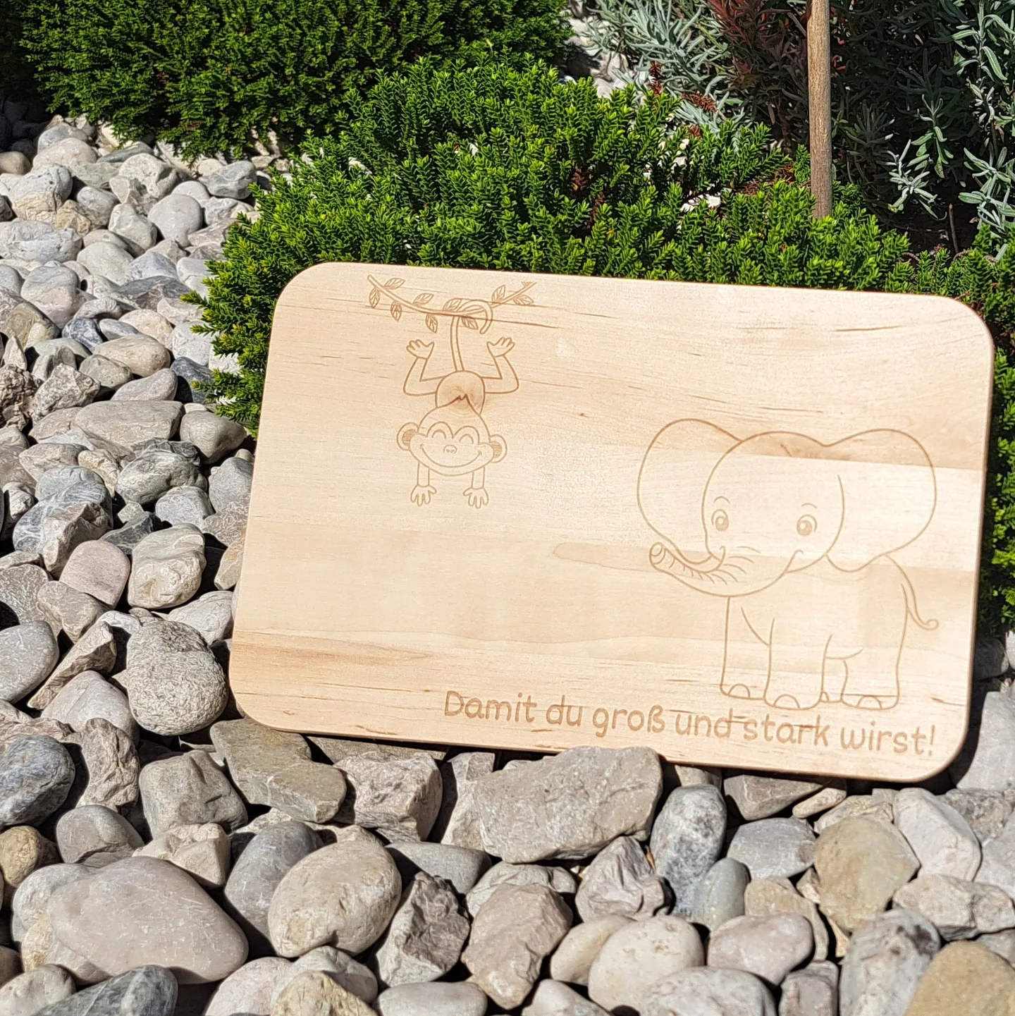 Für noch mehr Individualität können Sie das Jausenbrettchen auch mit einem Wunschtext personalisieren lassen. Ob Name, Geburtsdatum oder ein ganz persönlicher Spruch – das Brettchen wird so zu einem einzigartigen, persönlichen Geschenk, das bei Kindern und Eltern gleichermaßen gut ankommt.