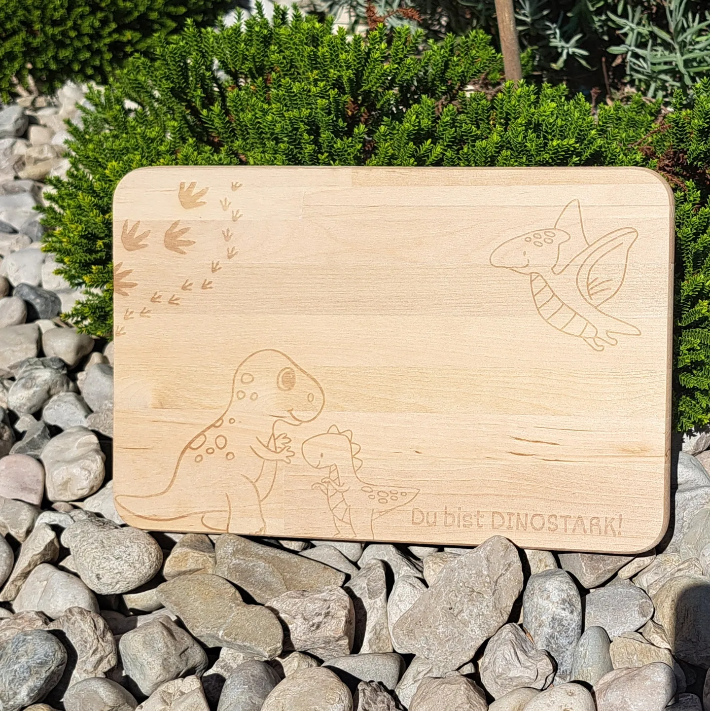 Für kleine Entdecker und Abenteurer, Du bist Dinostark, Damit du groß und stark wirst!, Mit jedem Bissen ein Stückchen größer!, Du kannst alles schaffen!, Wunschgravur